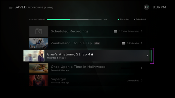 The TimeLine is the feature for accessing recently watched content and accessing recommendations.
