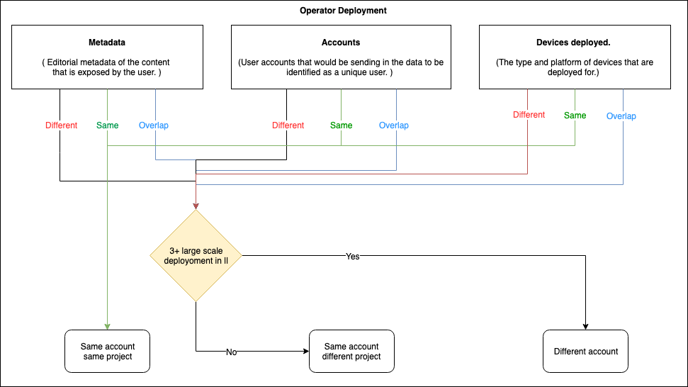 Accounts – having different or overlapping accounts is a straightforward case for having separate projects, as user behaviours overlap in usage consumption and there is no way to separate this consumption data. The ideal way to deal with this situation is to judge the deployment scale before considering whether to have separate projects or separate accounts.