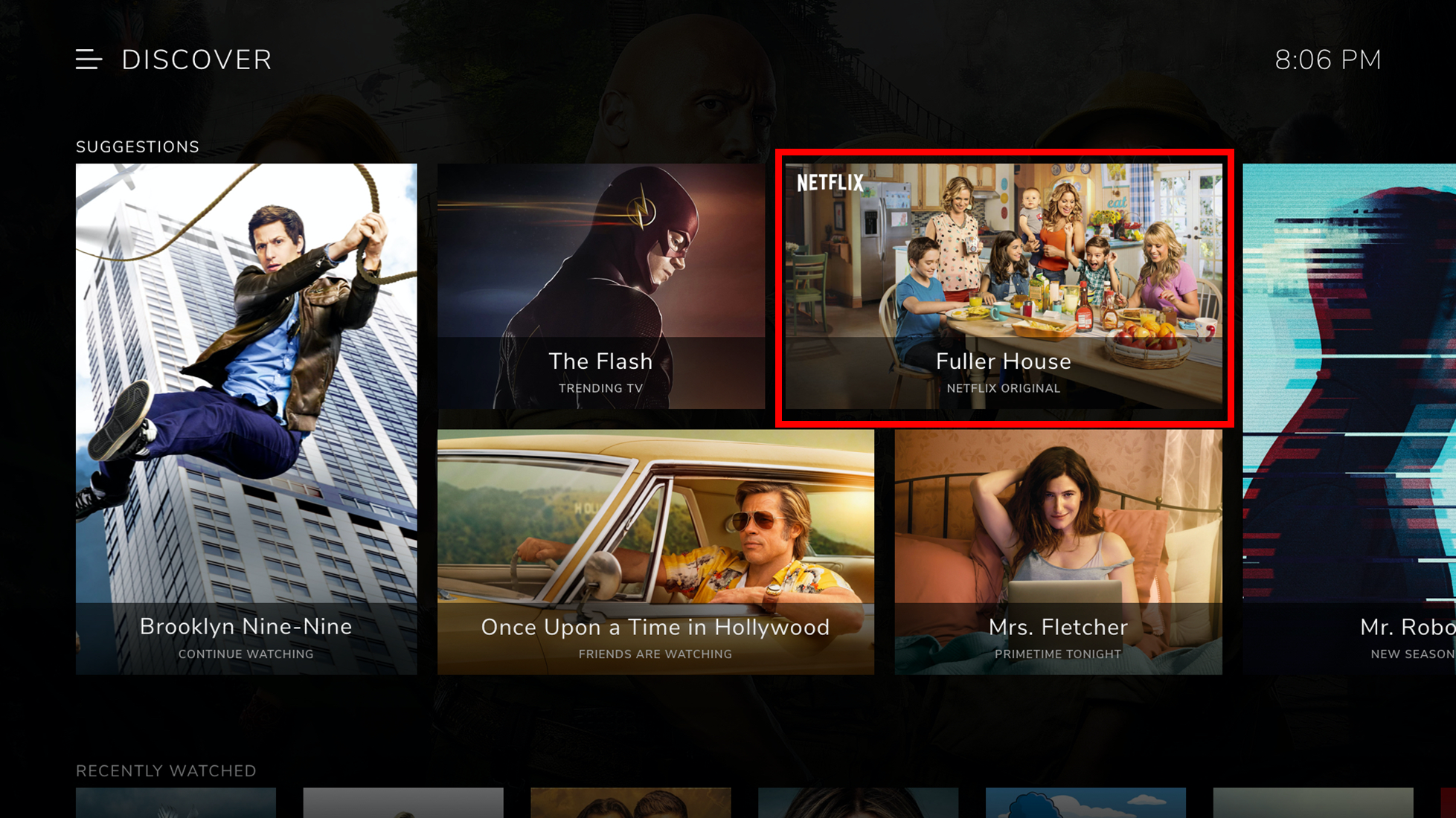 Shown in a strip on the  home menu (surfaced using the Google Channels API)