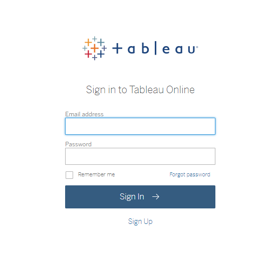 To display the Tableau login page, from the top menu, select DASHBOARD and TABLEAU.
