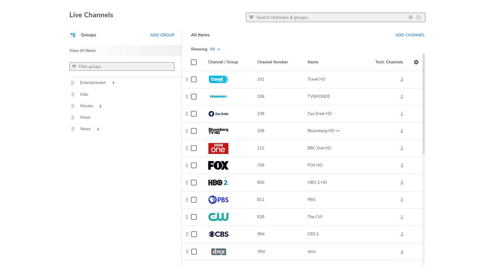 Channels are generally created automatically using the metadata imported from Gracenote or other metadata providers. Where the data for a specific channel is not loaded, you can add the channel manually.