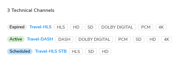 Running your mouse over the number of Technical channels field displays a popup showing the status of the configured Technical channels.