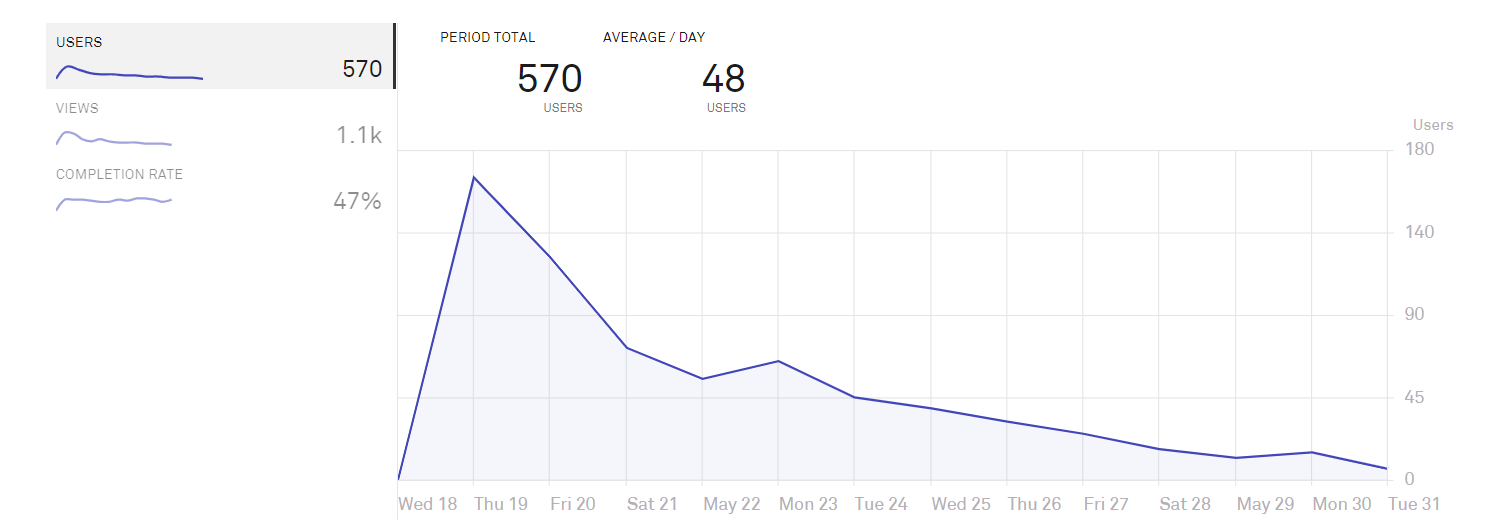 The default view shows the performance of the VOD item across all platforms. For a description of these metrics, click the button or see Metrics and analytics.