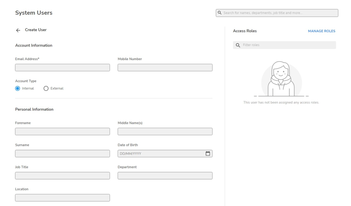 Enter and select the relevant details in the fields and click the CREATE (RECORD) button to save the record.