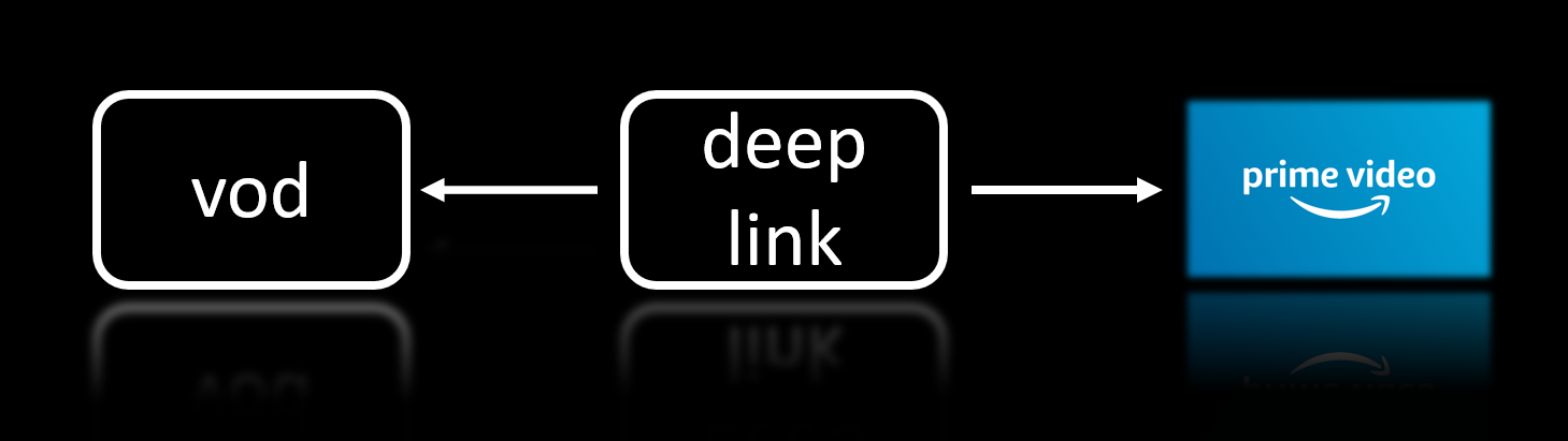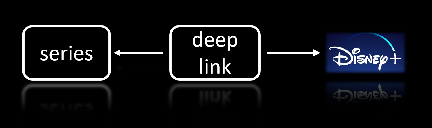 A "deep link" is a pointer from the assets in the core platform to one or more other providers, such as Disney+, Amazon Prime Video, or Netflix.
