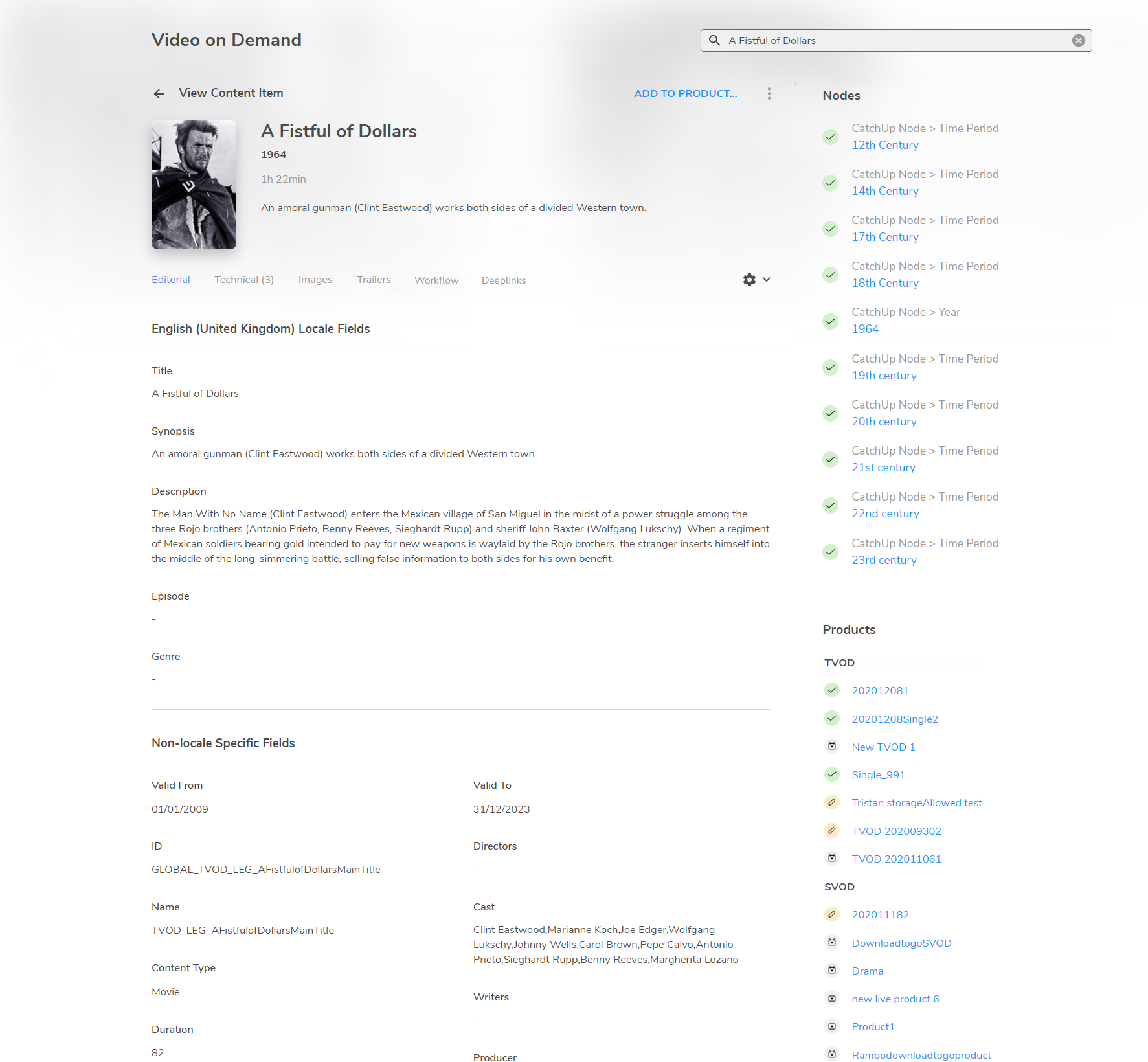 Where a node is added to a product, content items on that node are listed in the Product section.