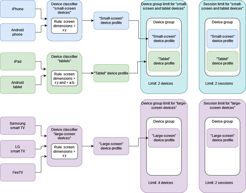 A device group limit lets you define a device group that includes one or more device profiles and then set a limit for the number of devices belonging to this group that can be added to an account.Set device session limits for a device group.